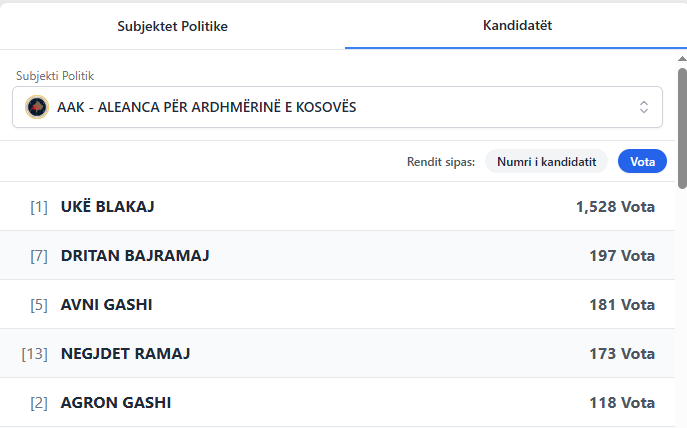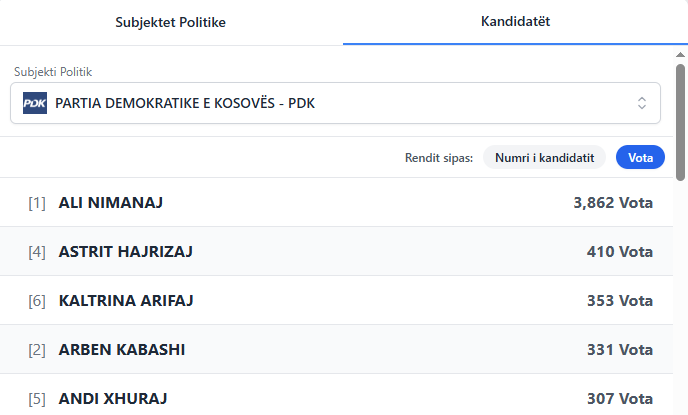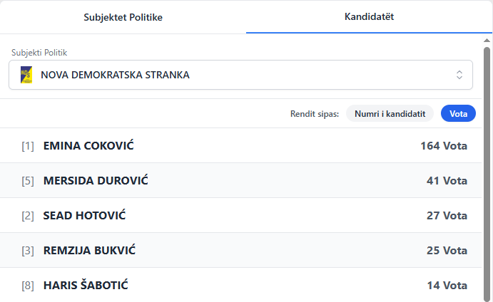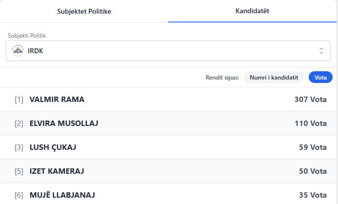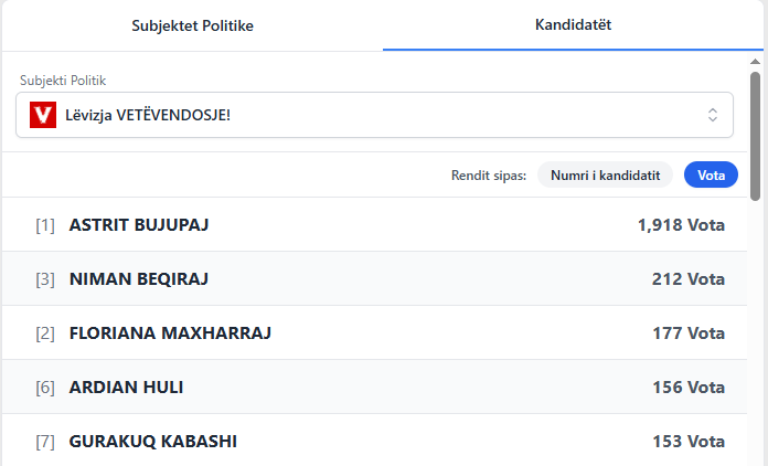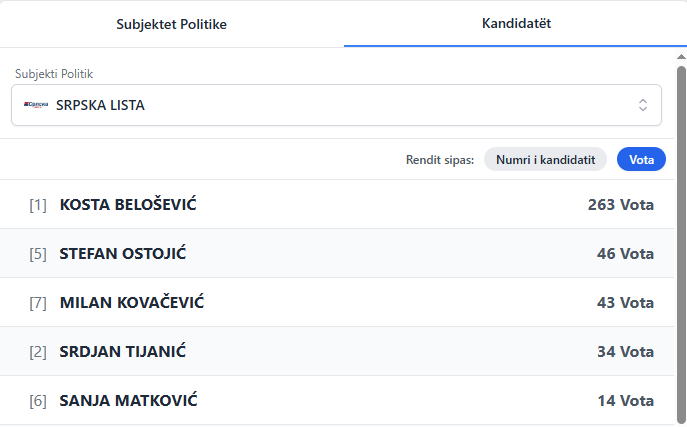 Këta janë pesë kandidatët më të votuar nga secila parti: