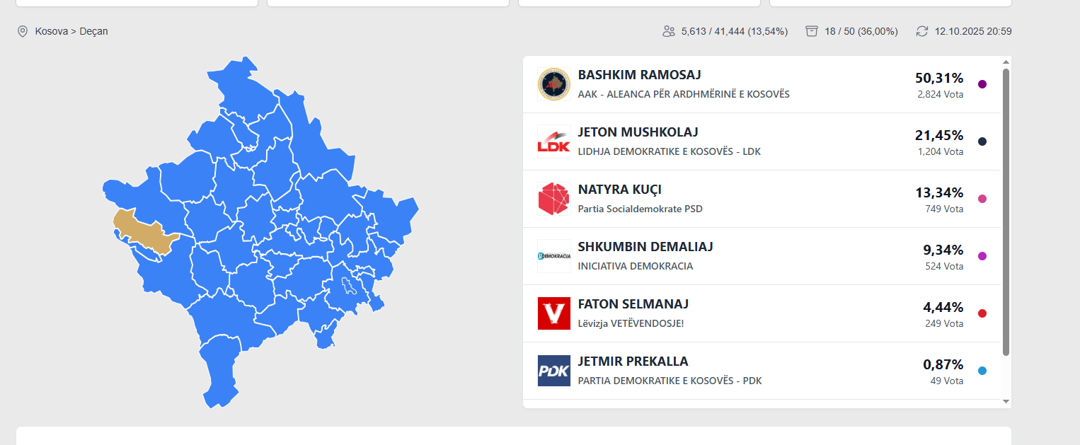 Deri tani, KQZ ka publikuar 36% të vendvotimeve të numëruara në Komunën e Deçanit.