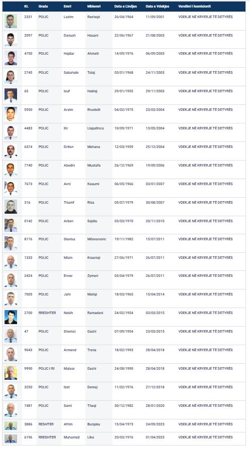 Dy policët e fundit që vdiqën në krye të detyrës ishin heroi i kombit, Rreshteri Afrim Bunjaku, i cili u vra gjatë sulmit të terroristëve serb në Banjskë me 24 shtator 2023 dhe Rreshteri Muhamed Lika u vra mbrëmjen e 1 prillit në hyrje të banesës së tij në Kaçanik, nga person i një grupi që ai ishte duke e hetuar./lajmi.net/