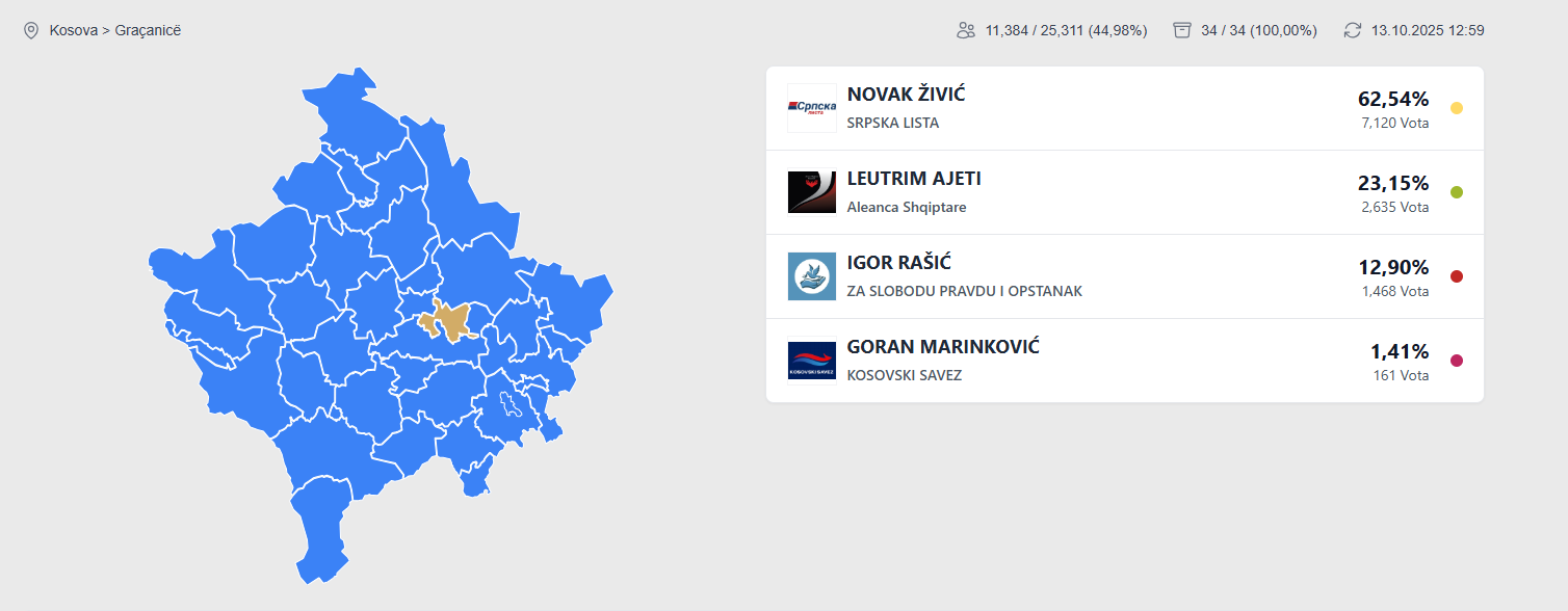 Pa balotazh, Lista Serbe e mori edhe Komunën e Graçanicës, pavarësisht që të gjitha partitë shqiptare kandiduan me një kandidat të përbashkët, Leutrim Ajetin nga Aleanca Shqiptare.