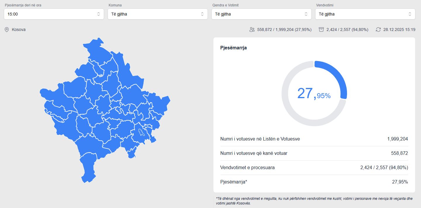 Nëse kthehet në përqindje, 27.95 përqind e qytetarëve kanë votuar deri më tani./lajmi.net/