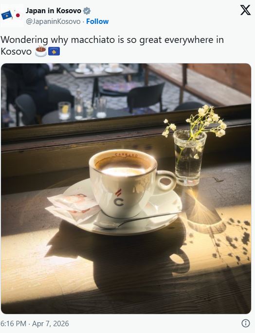 Së fundmi, edhe Ambasada e Japonisë në Kosovë ka ndarë një reagim pozitiv, duke pyetur me kureshtje: “Pse makiato është kaq i mirë kudo në Kosovë?”, një reflektim që pasqyron përvojën e shumë vizitorëve ndërkombëtarë.