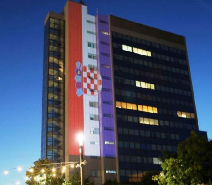 Ngjyrat e flamurit të Kroacisë ndriçojnë ndërtesën e Qeverisë së...