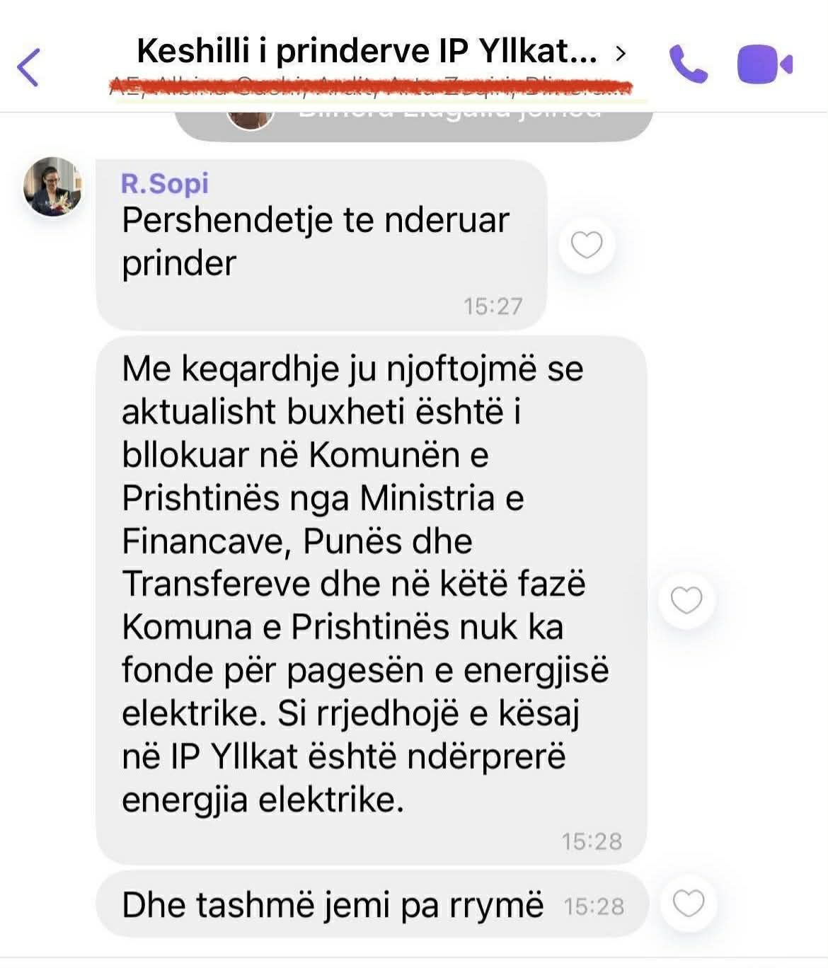 Në një fotografi që po qarkullon në rrjetet sociale, drejtoresha e çerdhes “IP Yllkat” ka treguar se për shkak se Komuna e Prishtinës nuk ka fonde për pagesën e energjisë elektrike, është ndërprerë rryma.