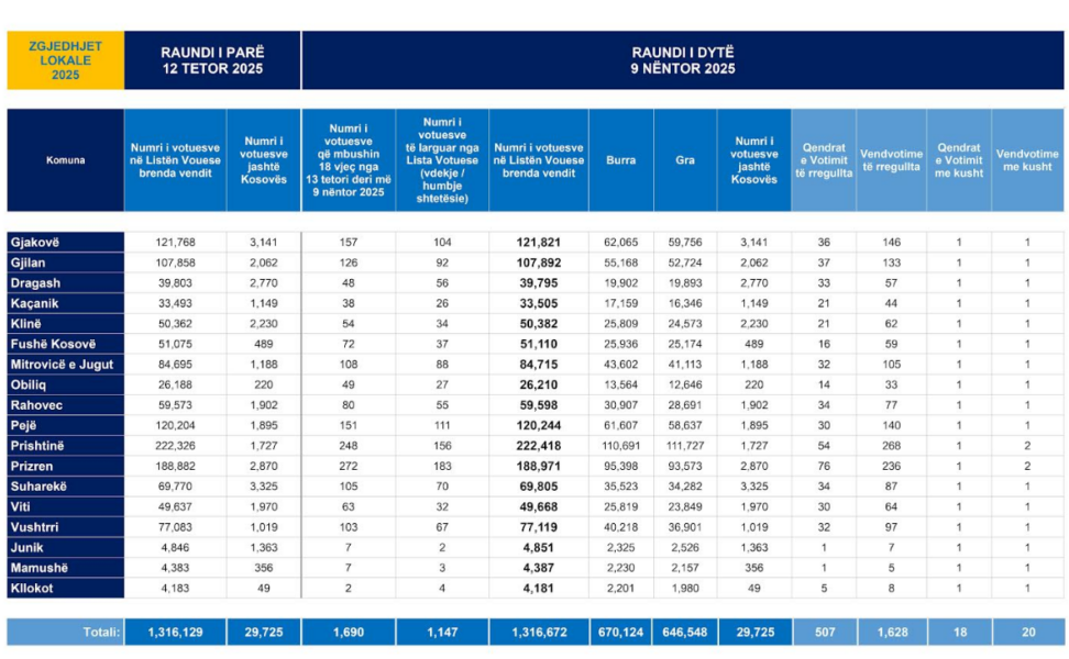 Komisioni Qendror i Zgjedhjeve ka njoftuar se në balotazh janë 1 milion e 316 mijë e 672 votues.