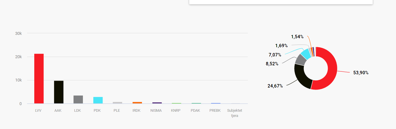 Ndryshe, sipas rezultateve preliminare, Lëvizja Vetëvendosje ka shënuar bindëse në zgjedhjet parlamentare në Kosovë, me 47.89 për qind të votave ose 377.072 të votave.