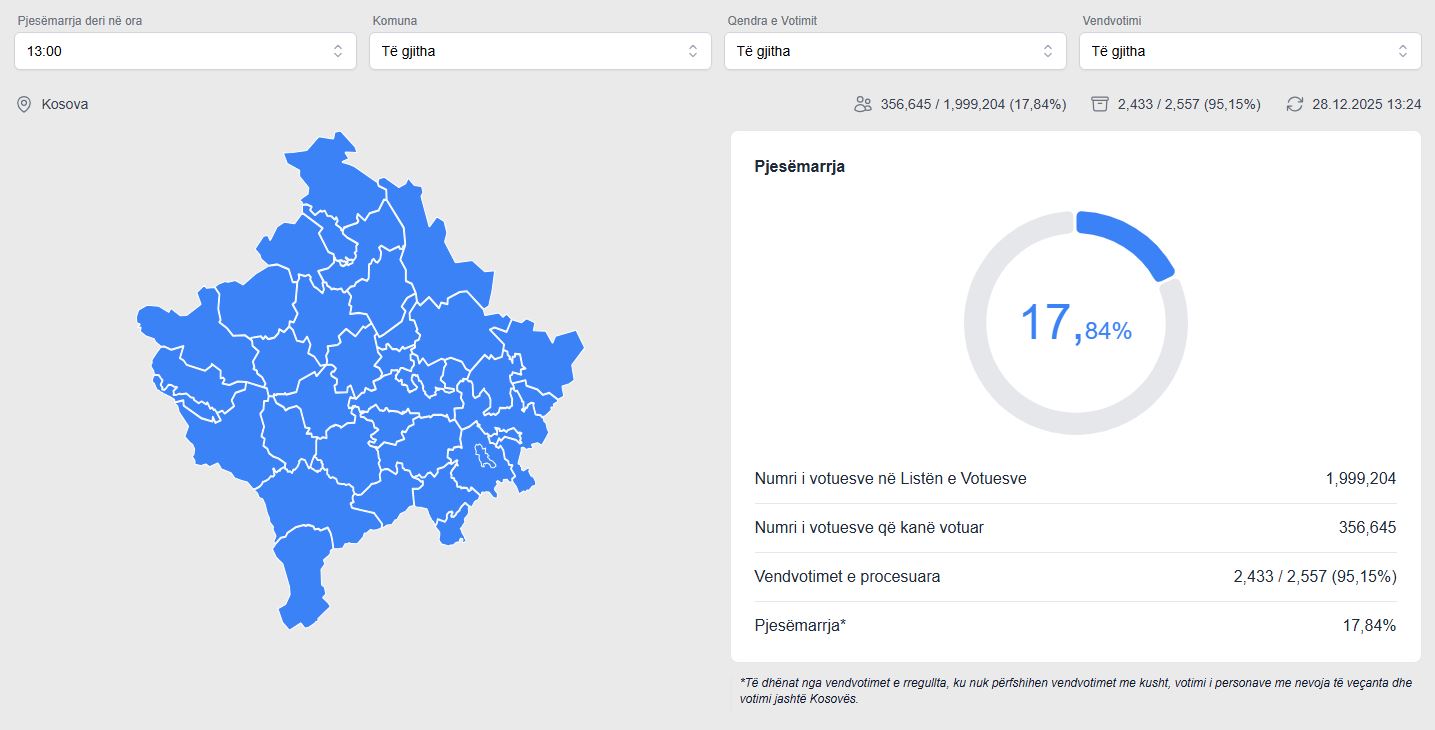Nëse e kthejm në përqindje, i bie që 17.84 përqind e qytetarëve kanë ushtruar të drejtën e votës./lajmi.net/