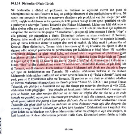 “Pas bisedës që kemi pasur lidhur me mundësinë e marrjes me qira të lokalit, pas disa muajve Ridvani më ka thirr në telefon dhe më tha se, a ke ende kontakt me polakët, sepse jam i interesuar për produkte të vajit dhe sheqerit, sepse e kam një ofertë pune, ndërsa unë pastaj e kam takuar Ridvanin dhe ia kam dhënë vizitkartën e Tomas Tokarskit dhe gjatë këtij takimi me Ridvanin ne kemi diskutuar rreth vajit dhe sheqerit dhe mundësit e angazhimit të Tomasit për ta bërë ketë furnizim”, ka rrëfyer Nezir Idrizi.