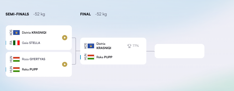 Në finalen e madhe, Krasniqi do të përballet me hungarezen Reka Pupp./lajmi.net/