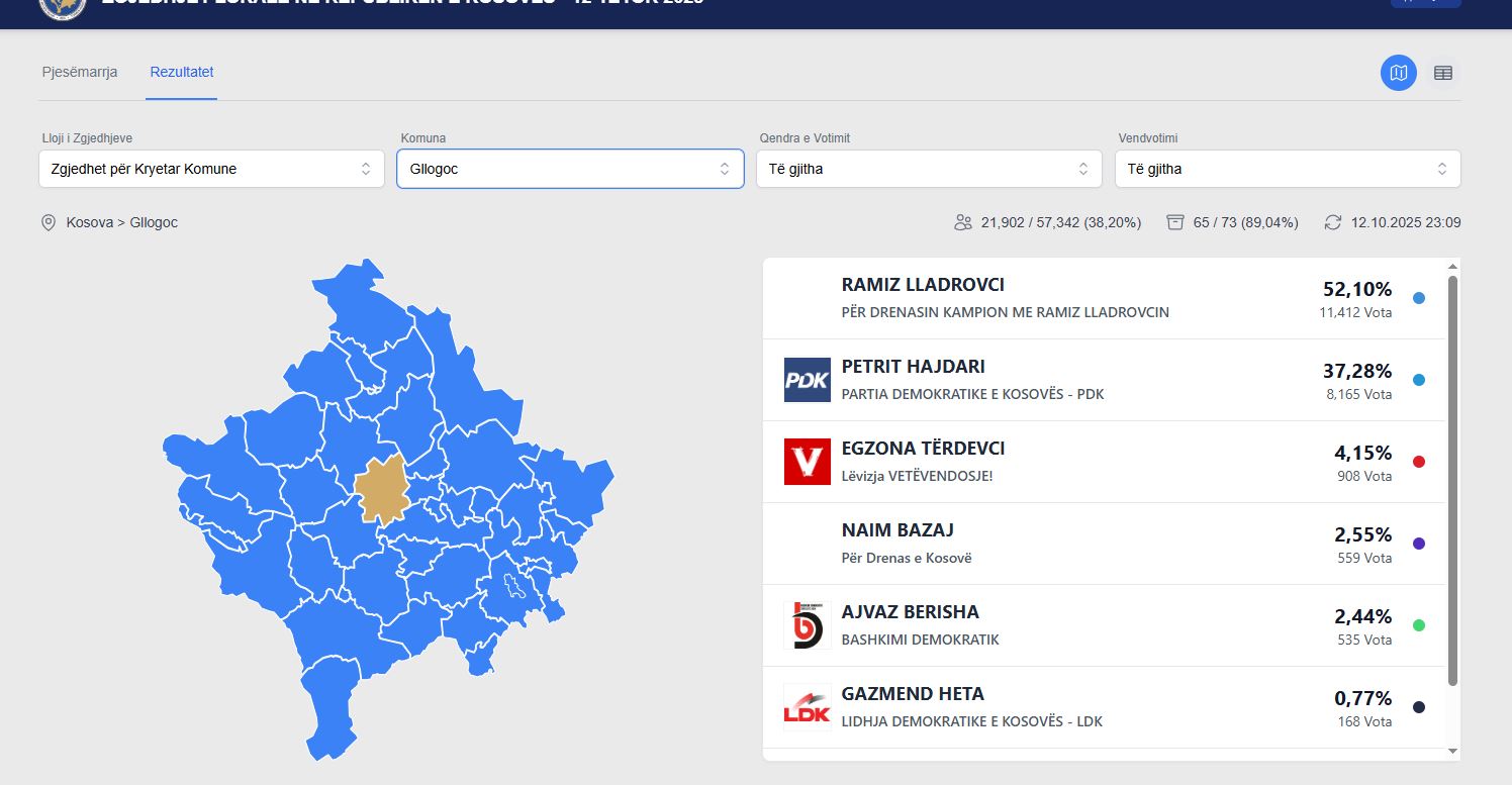 Drenasi- nga numërimi i deritanishëm Ramiz Lladrovci merr mbi 52,10%