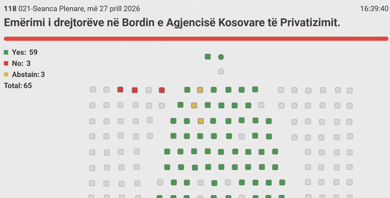 Sot në Kuvendin e Kosovës, është miratuar emërimi i drejtorëve në Bordin e Agjencisë Kosovare të Privatizimit.