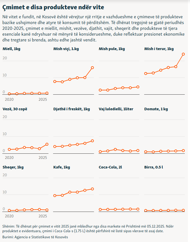 “Çdo ditë dal në dyqane dhe i hulumtoj çmimet. Një kilogram mish i terur është 26.00 euro, ndërsa mishi i kuq i viçit ka arritur në 16.00 euro. Kjo është jashtë normales”, thotë ky banor i Prishtinës për Radion Evropa e Lirë.