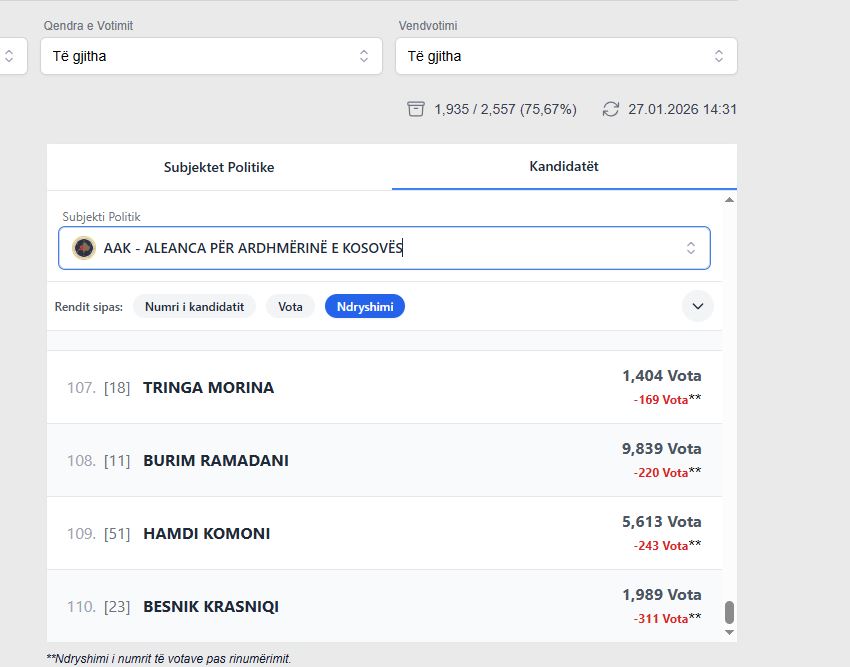 Nga këto të dhëna rezultojnë edhe kandidatët të cilëve u ndryshuan shumë votat, apo ranë në votë.