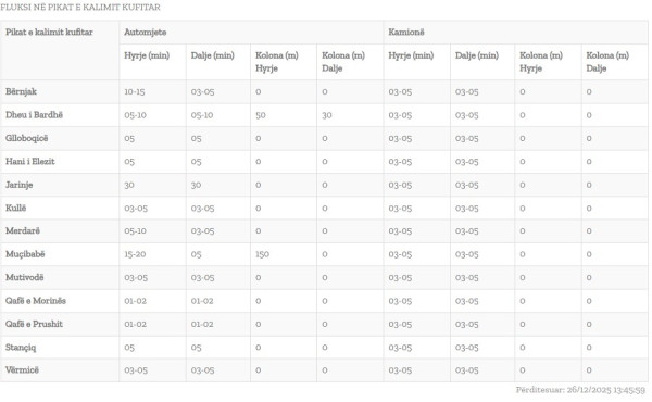 Gjendja e fluksit të qarkullimit të automjeteve në pikat e vendkalimeve kufitare sot gjatë ditës është më e qetë krahasuar me ditët e kaluara.