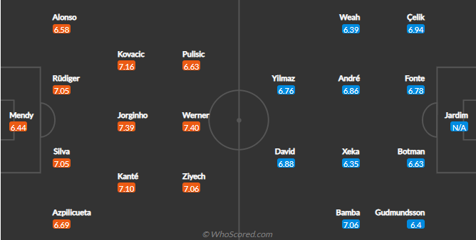Chelsea (4-3-3): Mendy; Alonso, Rudiger, Silva, Azpilicueta; Kovacic, Jorginho, Kante; Pulisic, Werner, Ziyech