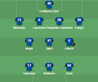 Dinamo Zagreb: Livakovic; Ristovski, Lauritsen, Theophile-Catherine, Franjic; Majer, Jakic, Ademi; Ivanusec, Orsic; Petkovic