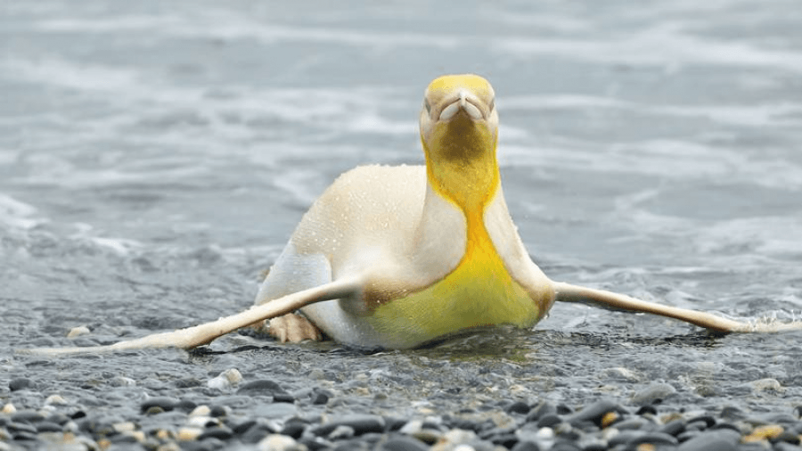 Pinguini i verdhë raportohet se është me gjendjen ‘leucistike’. Që shkakton humbje të pjesshme të pigmentit te kafshët. Yves, e përshkrunate eksperiencën si unike. “Nuk kisha parë kurrë pinguin të verdhë më parë. Kishte rreth 120 000 zogj në atë plazh dhe vetëm një ishte i verdhë”.
