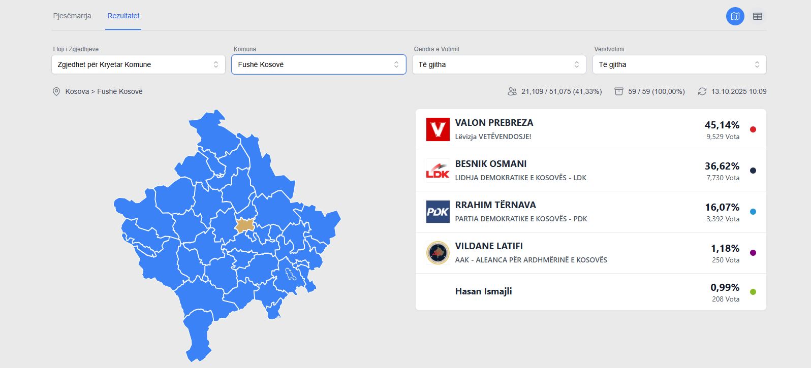 Fushë- Kosova në balotazh, i famshmi i VV-së Valon Prebreza me 45.14%
