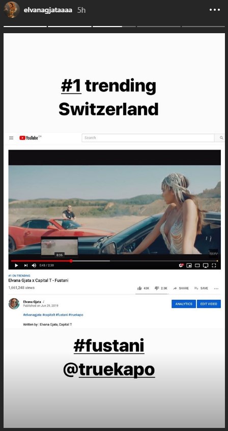 Me anë të një postimi të bërë në Instastory, Elvana njofton se dueti me reperin është kënga më e dëgjuar për momentin në Zvicër. /Lajmi.net/