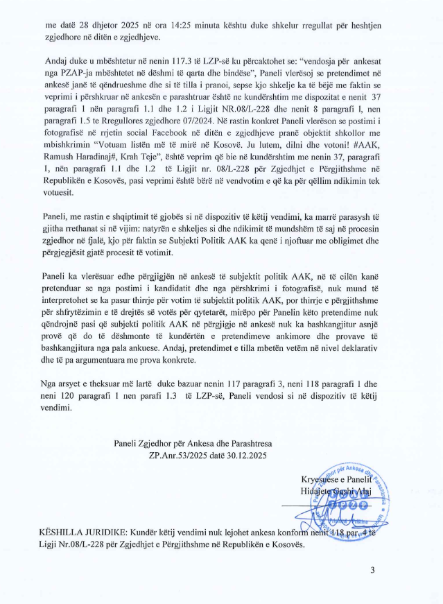 Këtë rregull, sipas PZAP-së, nuk e respektoi kandidati i AAK-së për deputet, Gazmend Syla.