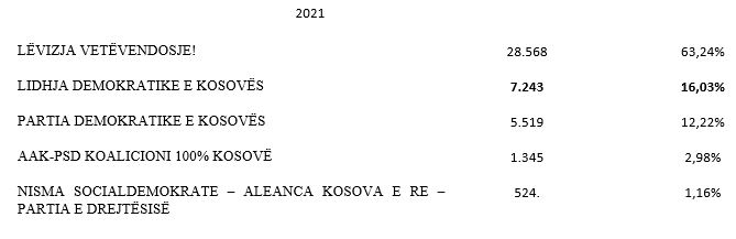 63.24% të votave në Gjilan i ka marrë Lëvizja Vetëvendosje dhe vetëm 16.03% Lidhja Demokratike e Kosovës.