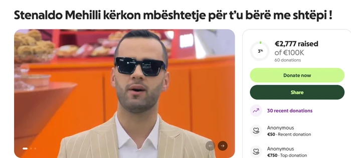 Është hapur një fushatë në platformën GoFundMe për të mbështetur Stenaldo Mëhillin, ish-banorin e Big Brother VIP Albania, i cili po përballet me vështirësi ekonomike.