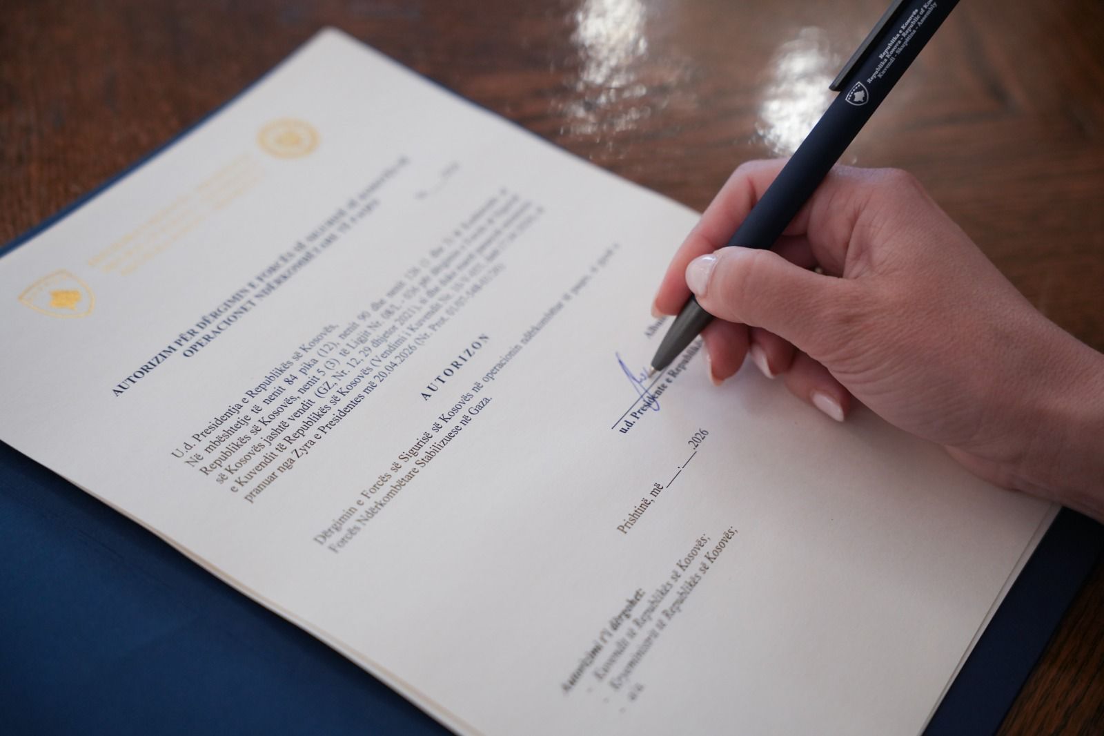 U.D e Presidentes së Kosovës, Albulena Haxhiu ka autorizuar dërgimin e Forcës së Sigurisë së Kosovës, në operacion ndërkombëtar paqeruajtës, si pjesë e Forcës Ndërkombëtare Stabilizuese në Gaza pas miratimit në Kuvendin e Kosovës.