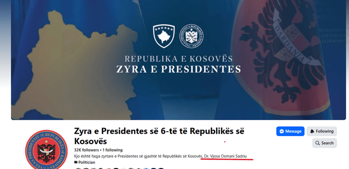 Megjithatë, në përshkrimin e faqes ka mbetur ende emri i ish-presidentes, Vjosa Osmani, ku thuhet se faqja është zyrtare e Presidentes së gjashtë të Republikës së Kosovës, Dr. Vjosa Osmani Sadriu.