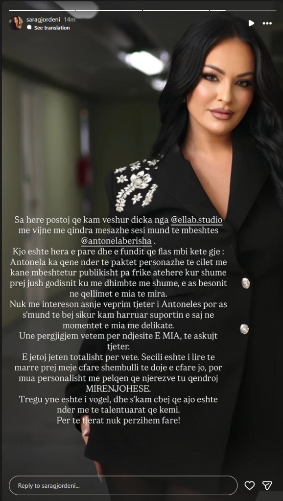 Pas komenteve të shumta dhe kritikave që nuk ndalen, Sara ka zgjedhur të reagojë sërish përmes një postimi të gjatë në Instagram, duke ndarë mendimet e saj për këtë situatë.