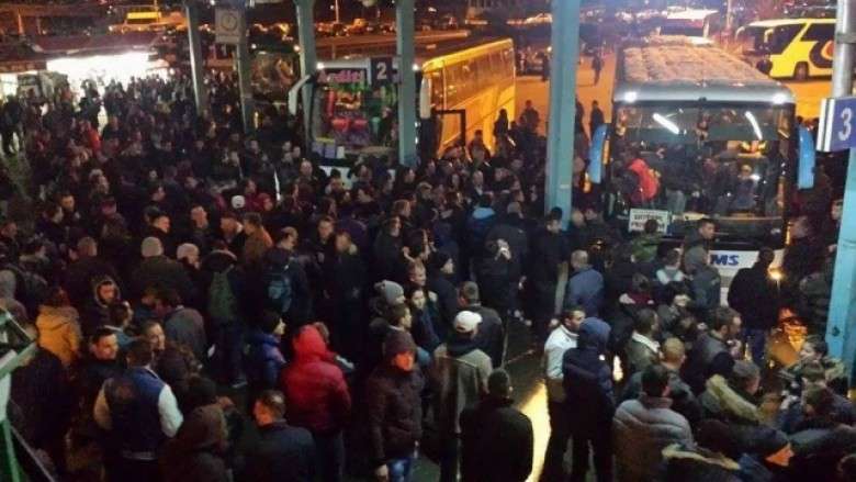Afër tyre janë edhe dhjetëra qytetarë të tjerë që presin autobusët e së njëjtës linjë, duke synuar më pas ilegalisht kalimin e kufirit drejt Hungarisë.