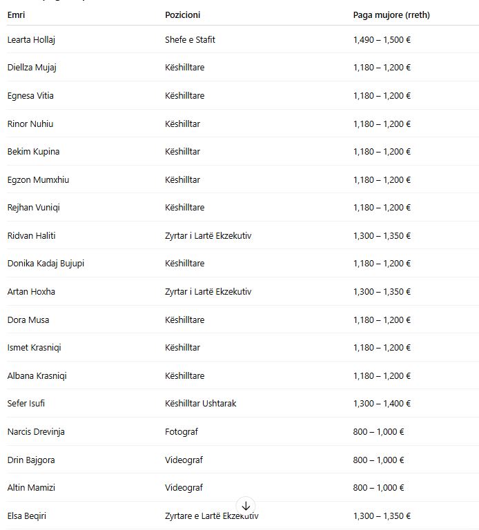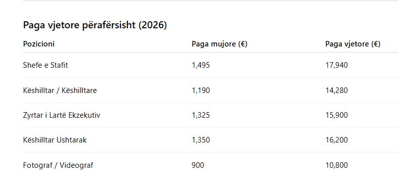 Këto shifra përfaqësojnë vetëm pagën bazë mujore dhe nuk përfshijnë mëditjet, kompensimet për udhëtime apo bonuset e tjera që mund të aplikohen sipas rregullave të Presidencës.