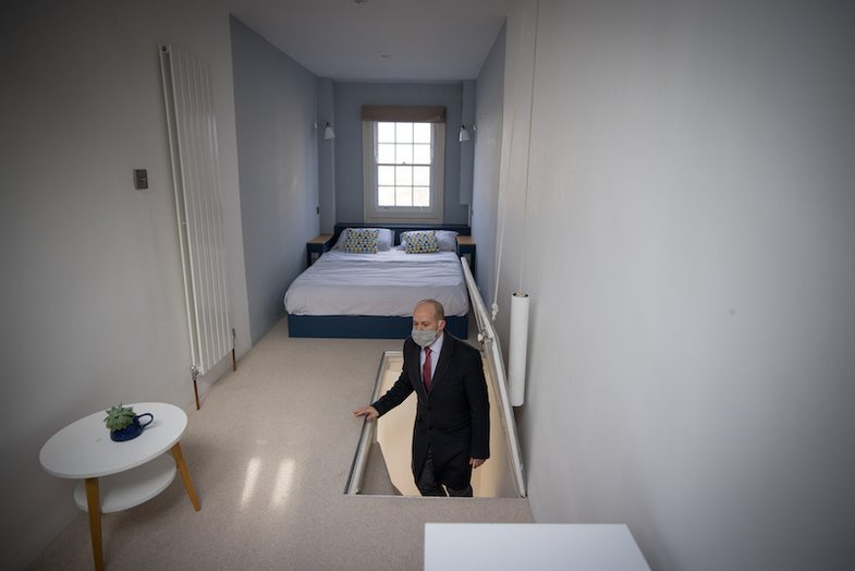 Sipas agjencisë, niveli i bodrumit ka një kuzhinë, një dhomë ngrënieje dhe dyer prej qelqi, ndërsa kati i parë përmban një dhomë pritjeje. Shkallët spirale të ngjisin në katin e dytë, ku gjendet një dhomë studimi dhe një dhomë gjumi. Në katin e tretë ndodhet tualeti, një dhomë zhveshjeje dhe dushi. Në majë të shtëpisë gjendet dhoma kryesore e gjumit.