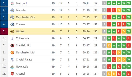 Triumfi kundër Leicester Cityt dhe humbja e Manchester Cityt kundër Wolves, ka bërë që Liverpool të krijojë diferencë të madhe ndaj ndjekësve të parë./Lajmi.net/