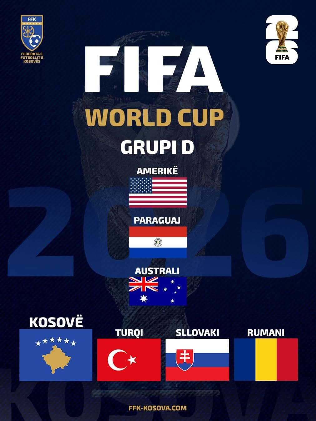 Kombëtarja e Kosovës sot ka mësuar kundërshtarët e mundshëm, nëse kualifikohet në Kupën e Botës. Kosova fillimisht duhet të kaloj “Play-Offin”, kundër Sllovakisë, e pastaj kundër fituesit të ndeshjes Turqi-Rumani, transmeton lajmi.net. Nëse “Dardanët” i fitojnë dy ndeshjet, atëherë do të jenë në grupin D në Kupën e Botës me ShBA-të, Paraguajin dhe Australinë. Kosova,…