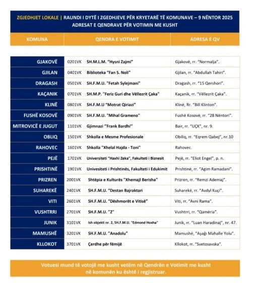 Më 9 nëntor do të hapen 18 qendra votimi për votim me kusht, me gjithsej 20 vendvotime.