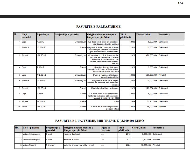 Kreu i KQZ-së me super-pasuri, banesa, shtëpi e një lokal 700 mijë euro- tri vetura e deklarim të kursimeve nga “hisja e mbetur”