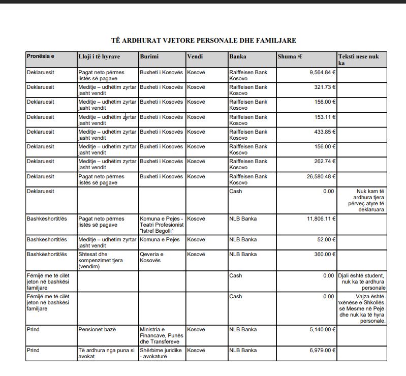 Në kuadër të të ardhurave vjetore, Radoniqi deklaroi pagën si dhe mëditjet që mori nga buxheti i Kosovës./Lajmi.net/