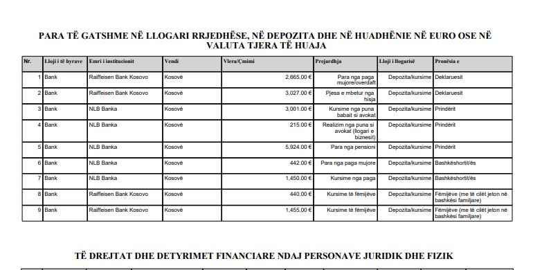 Radoniqi nuk është keq as sa i përket parave të gatshme nëpër banka.