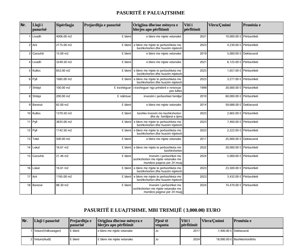 Ai gjithashtu ka deklaruar edhe 3 mijë e 749 euro para në bankë nga kursimet e tij, dhe mbi 5 mijë euro të bashkëshortes.