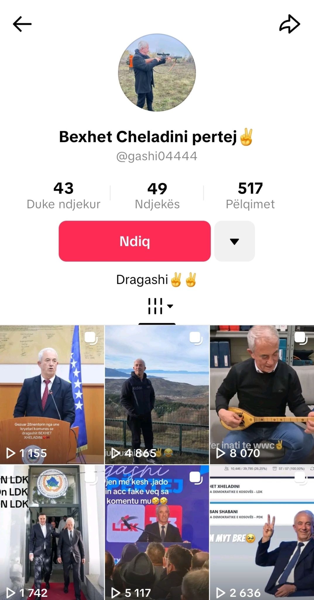 Dua t’ju informoj se së fundmi qenka hapur një llogari në rrjetin social TikTok me emrin Bexhet Cheladini përtej,pa dijeninë dhe pa autorizimin tim. Dëshiroj të theksoj qartë se çdo aktivitet i kryer përmes kësaj llogarie është plotësisht i rremë dhe i pavlefshëm.