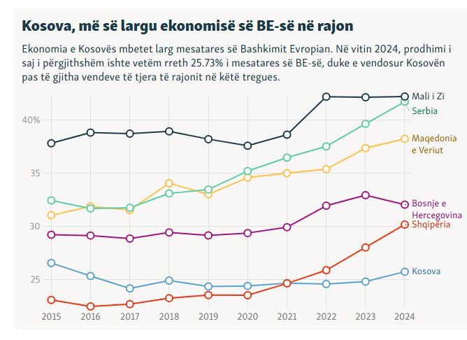 Për shembull, sipas statistikave të mbledhura nga platforma Coverge2EU, e cila ndjek gjendjen në vendet e Ballkanit Perëndimor që synojnë integrimin në Bashkimin Evropian, Kosova vazhdon të mbetet prapa shumicës së vendeve të rajonit në shumë fusha.