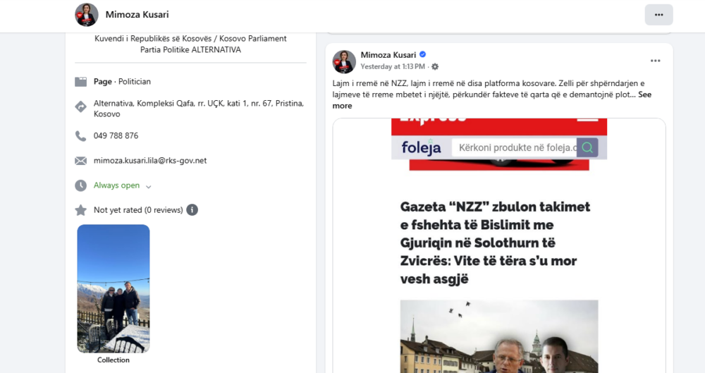 “Lajm i rremë në NZZ, lajm i rremë në disa platforma kosovare. Zelli për shpërndarjen e lajmeve të rreme mbetet i njëjtë, përkundër fakteve të qarta që e demantojnë plotësisht këtë narrativë. Kjo nuk është gazetari është papërgjegjësi”, ka shkruar Kusari-Lila.