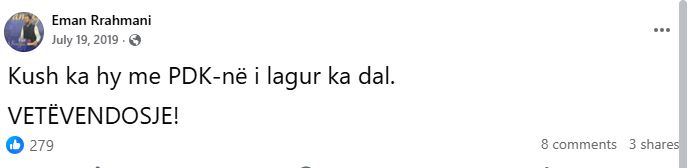 Në një rast, Eman Rrahmani deklaronte se “Kush ka hy me PDK-në i lagur ka dal”.