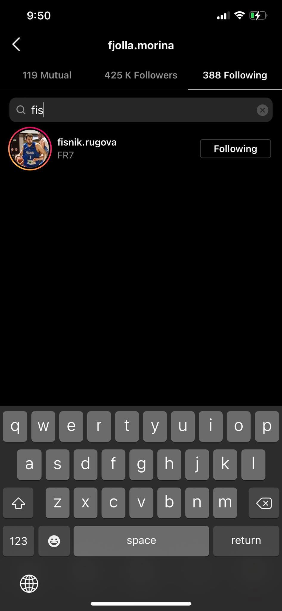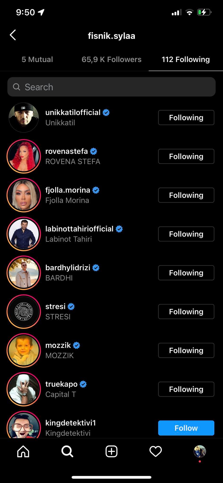 Derisa Fjolla vazhdon të rrijë indiferente duke mos i kthyer ‘follow’./Lajmi.net/