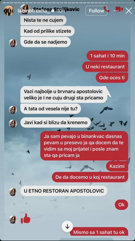 Për më tepër, në disa nga bisedat përmendet edhe mundësia e një takimi në një ambient publik, konkretisht në një restorant, me qëllim ofrimin e ndihmës së premtuar. Sipas deklaratës, këto mesazhe nuk tregojnë asnjë lidhje personale apo marrëdhënie intime mes palëve.