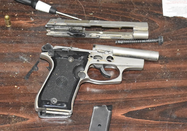 – armë zjarri (pistoletë) e çmontuar me dy fishekë,