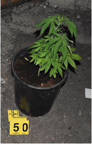 – pajisje të ndryshme të dedikuara për kultivim të bimëve narkotike si (llampa për ndriçim, aparat për ngrohje, klima, trafo të ndryshme të rrymës, gypa ventilimi, pajisje për matje të lagështisë, temperaturës, vegla pune, vazo, preparate kimike dhe pajisje tjera).