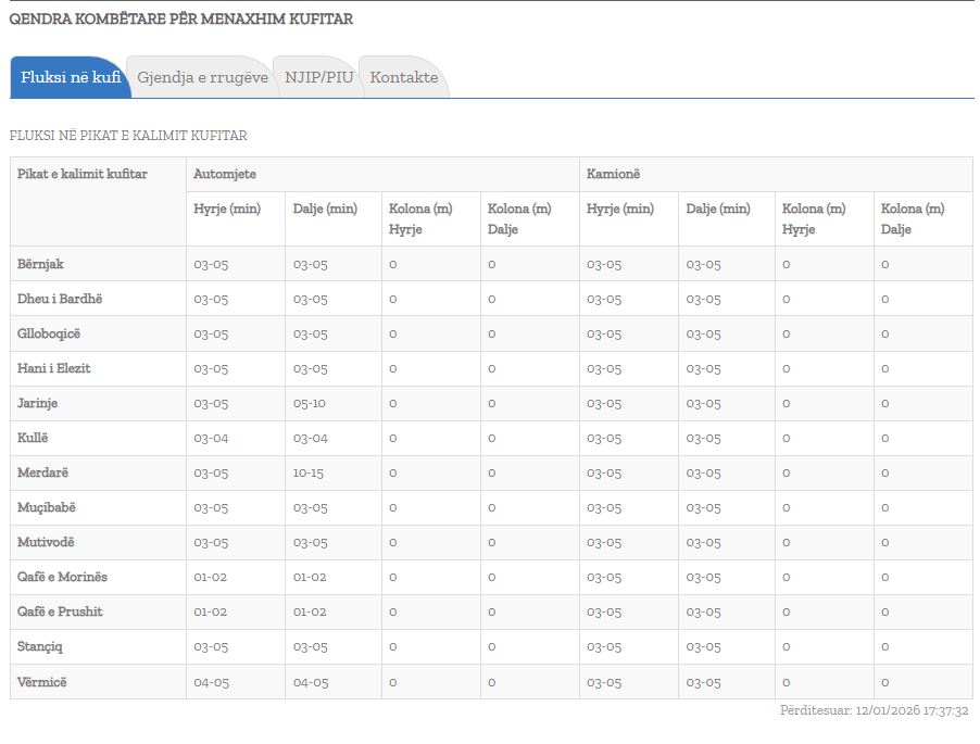 Kjo bazuar në përditësimin e fundit nga Qendra Kombëtare për Menaxhim Kufitar.
