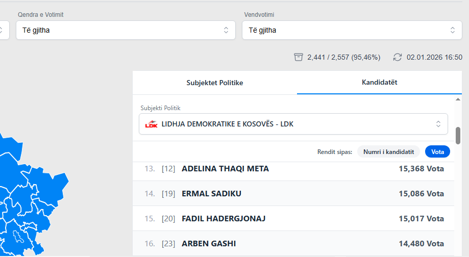 Lëvizje interesante në listën e LDK-së për deputetë teksa numërimi po shkon drejt fundit – dy kandidatë ndërrojnë vendet