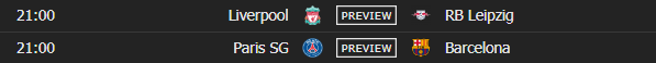 Ndeshja më interesante është mes PSG-së dhe Barcelonës që zhvillohet në “Parkun e Princave”, me blaugranasit që synon përmbysjen ngase rezultati i ndeshjes së parë ishte 1 – 4.
